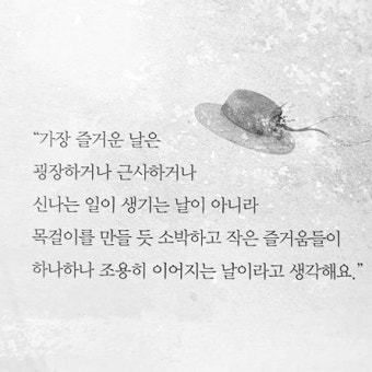 가장 즐거운 날은 굉장하거나 근사하거나 신나는 일이 생기는 날이 아니라 목걸이를 만들듯이 소박하고 작은 즐거움들이 하나하나 조용히 이어지는 날이라고 생각해요!